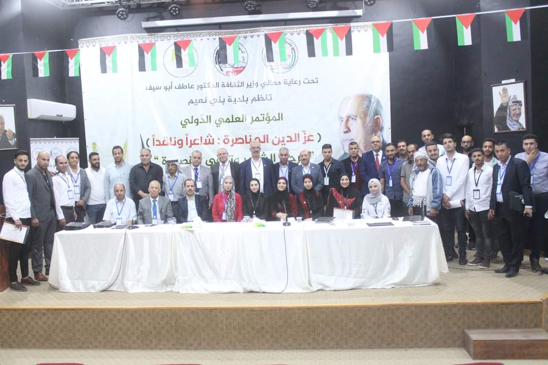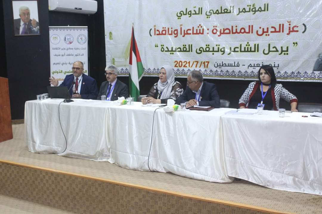 انعقد المؤتمر العلمي الدولي الأول وجاهيًا، وبث افتراضيًا من القصر الثقافي في مدينة بني نعيم، مسقط رأس الشاعر الفلسطيني الراحل عزالدين المناصرة، وبرعاية مشتركة بين بلدية بني نعيم ووزارة الثقافة الفلسطينية، تحت عنوان: